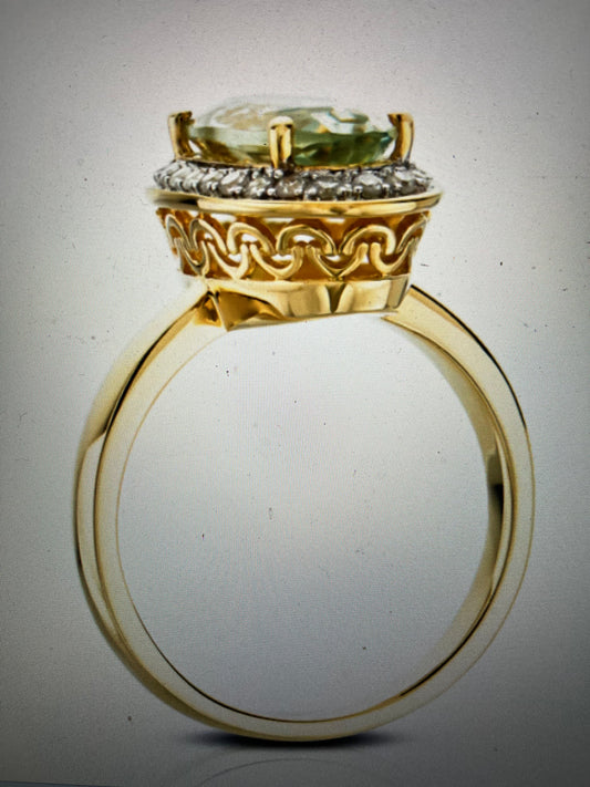 9ct Yellow Gold 0.15ct Diamond Green Amethyst Oval Ring