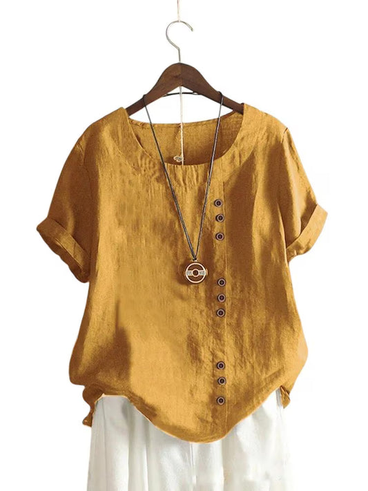 Candy Colours 100% Cotton Women's Button Blouse | Linen Touch O-Neck Short Sleeve Shirt Top (S-5XL) | Perfect for Spring & Summer | Free Worldwide Shipping